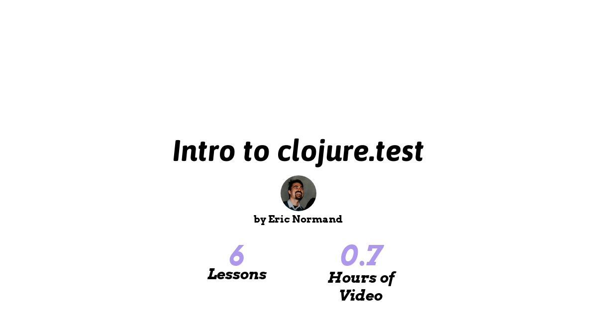 Intro to clojure.test is a course in Clojure testing fundamentals. It builds up all of the skills you need to start testing your code.